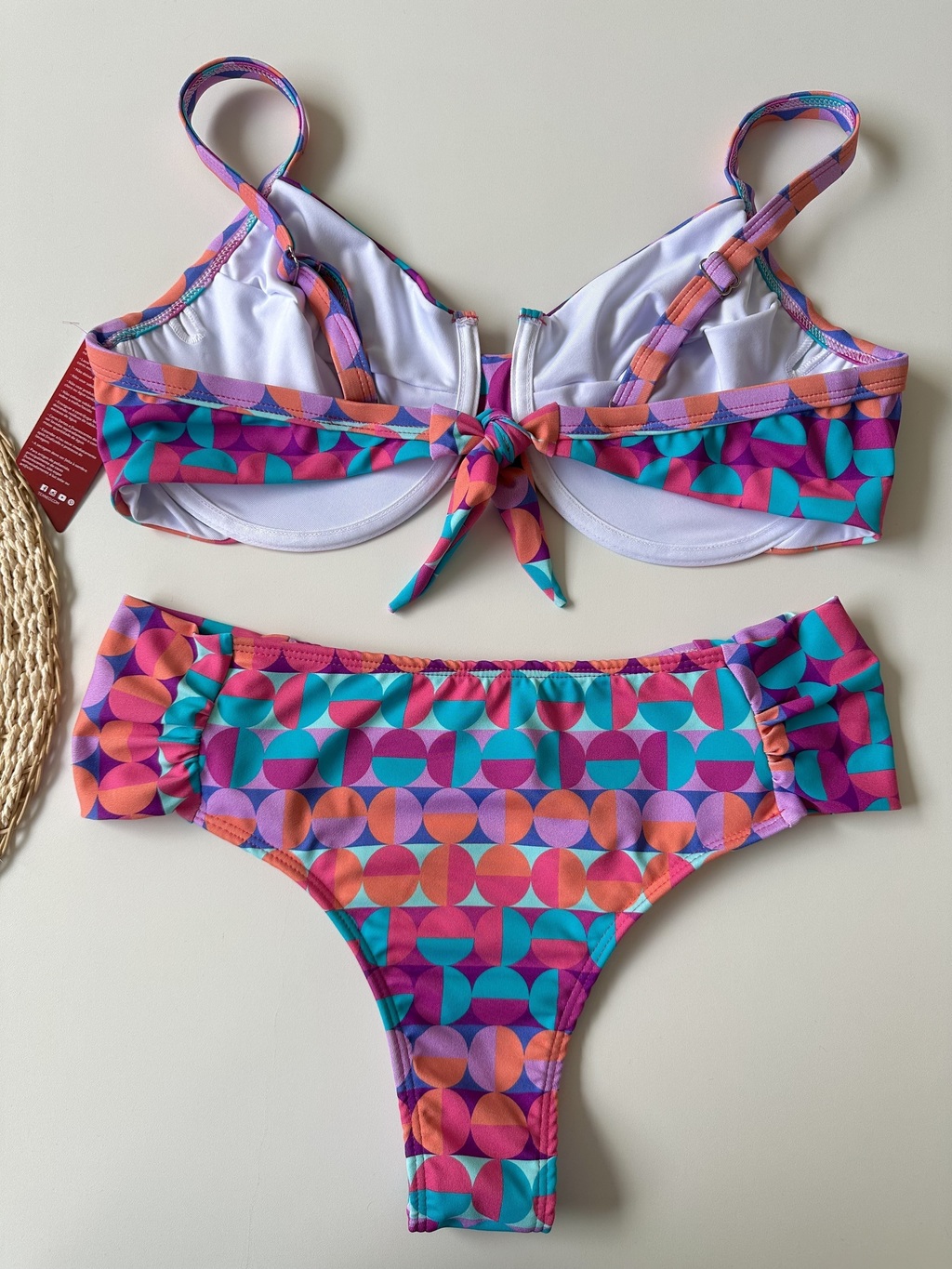 Conjunto confeccionado no tecido estampado poliamida, que possui um leve brilho, com proteção UV, que oferece toque macio e alta durabilidade.